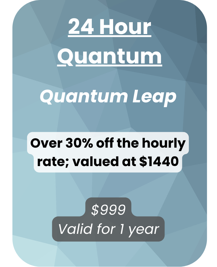 All packages and memberships can be applied with a code. After purchase, you’ll receive an email with a code that you’ll then use to schedule hourly sessions at your leisure. Or call/email to have us book for you. Reservations are strongly encouraged.